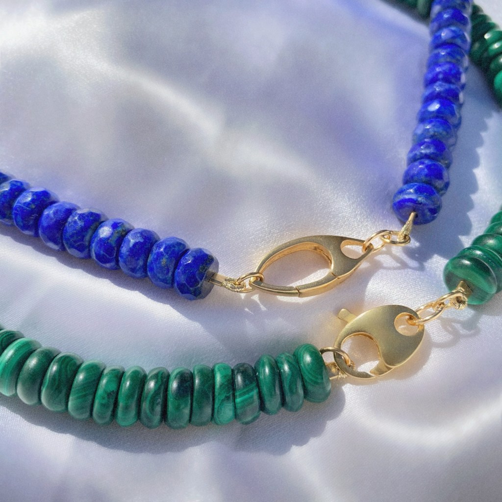• Malachite Choker – avail in 2 lengths, with a choice of clasp variation